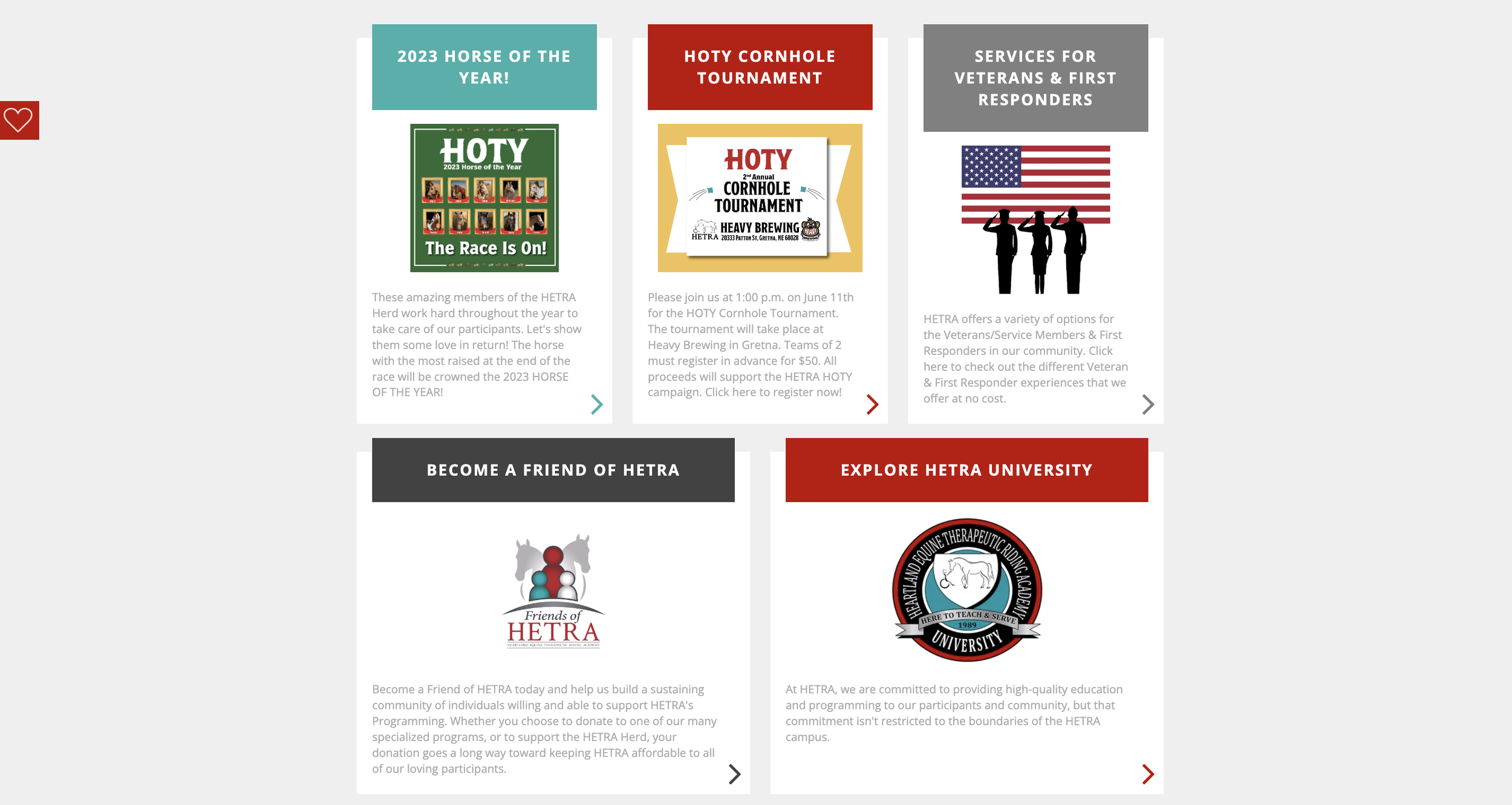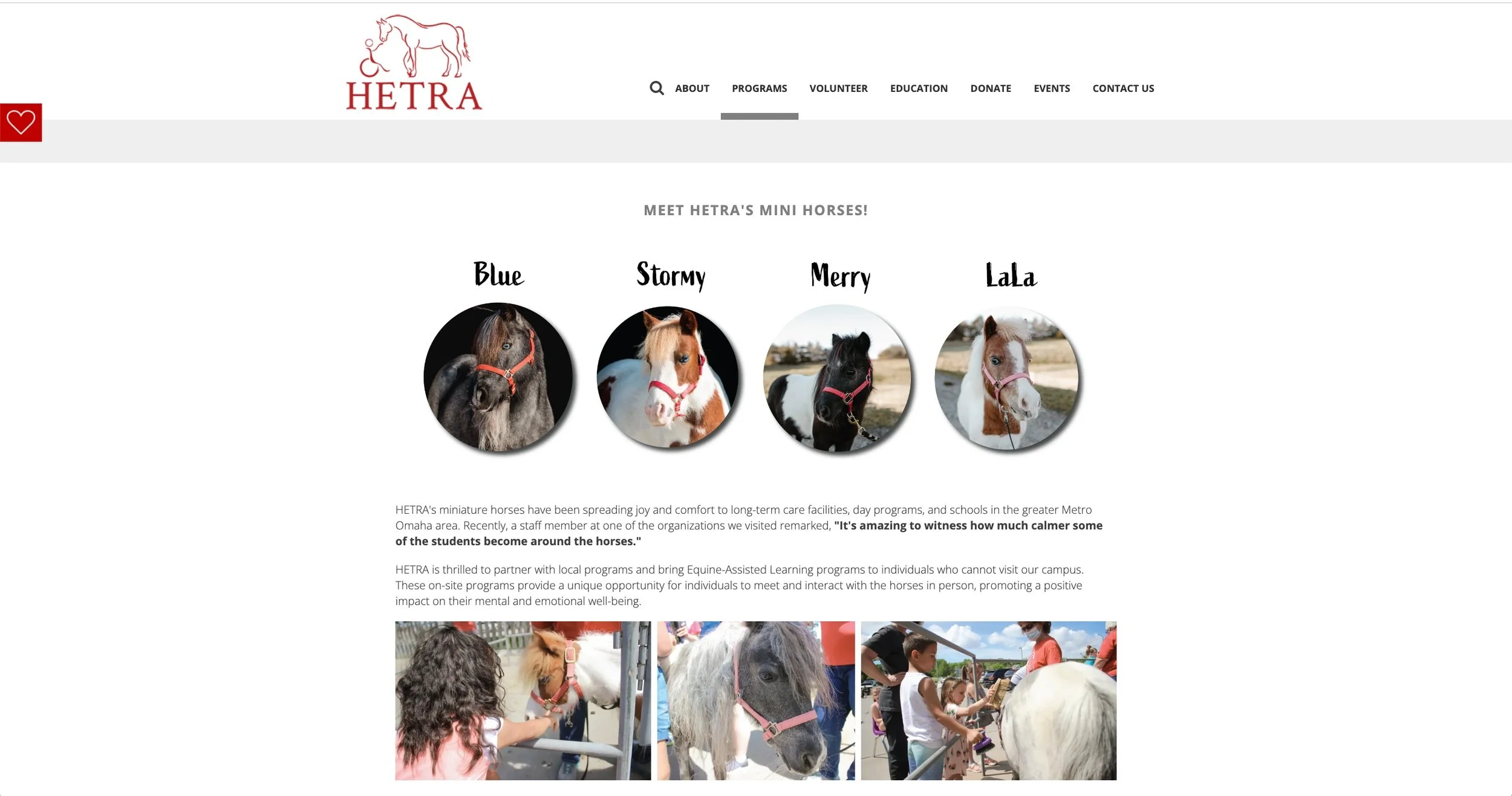 HETRA.org is a site that is visited monthly by 3,000+ users. I managed the design and navigation of this website and designed the pages. I conducted maintenance and updates on a weekly basis. I constantly improved the flow and user experience to make the site accessible and easily understood. HETRA’s audience ranges from businesses or individuals looking to sponsor or donate to HETRA, to families looking for services for their children, to older adults looking for volunteer opportunities.
